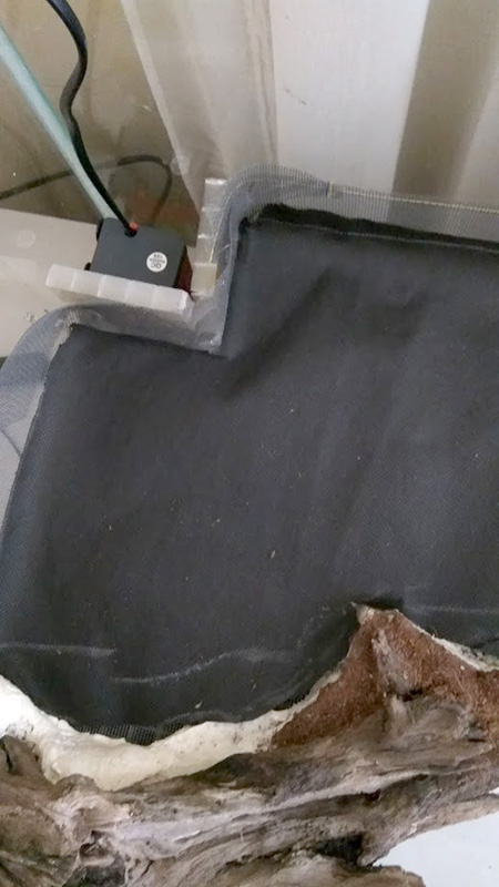 Прошу вибачення у товариства за наступне фото (як виявилось глюкнула карта у телефоні). У фон на силікон вклеїв корягу. Фон вклав у палюдаріум - він у мене опирається на корягу зліва, кусок решітки на заднвй стінці і плюс висить на скобаз з совкових алюмінієвих жалюзі - зробив прорізи у пінополістеролі фону і вклеїв на силікон.