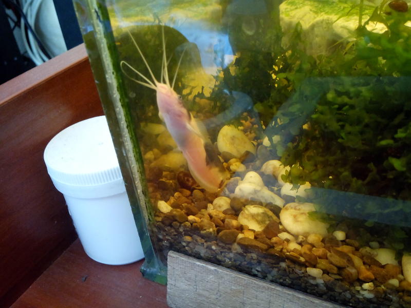 Додам фотки одного із них. Зараз соми маленькі, для порімняння, біла баночка коло ребра акваріума висотою 5,7 см.