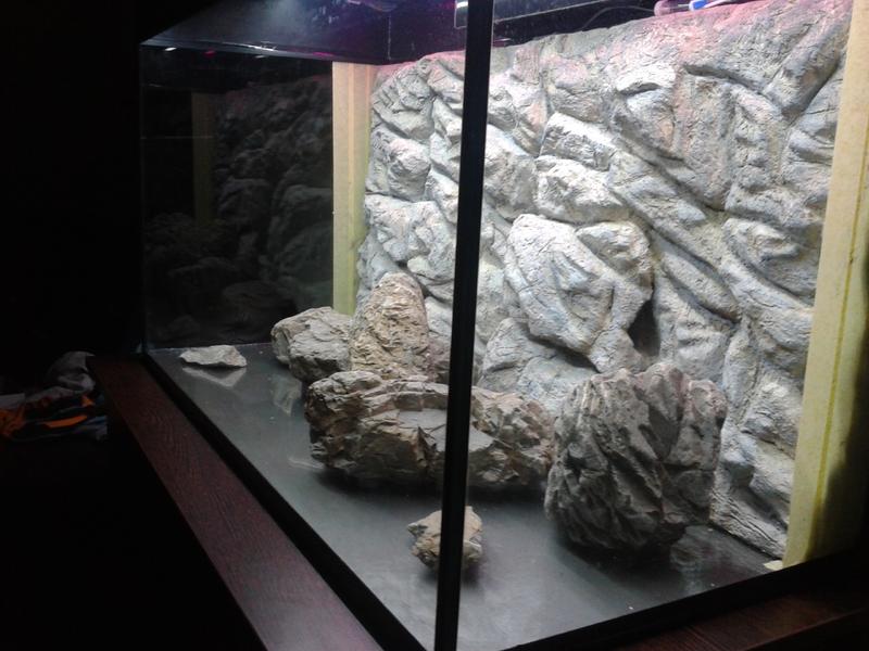 И так- запуск состоялся,все прошло как нож в сметану  .Начну по порядку ,на запуск ушло два вечера.День первый.1-аквариум прошел санитарную обработку ,швы протерты спиртом+вымыт теплой водой.2-монтаж 3-D фона на силикон.3 -тем временем ,на плите варятся ,парятся,томятся камни+грунт в доме жара конфорок пустых не осталось  .