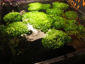 Иногда, с помощью тонкой рыболовной лески или прозрачной сетки это растение закрепляют на камнях или других предметах, расположенных в аквариуме.