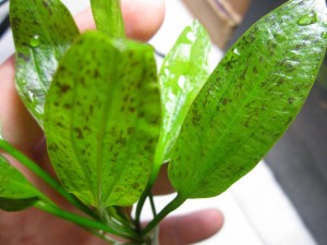 Эхинодорус Шлютера*«Леопард» (Echinodorus*schlueteri «Leopard»)*- селекционная*форма Echinodorusschlueteri немецкого*происхождения. Отличается*наличием контрастного*темно-коричневого крапа*на молодых*зеленых листьях.*Со временем*крап остается,*но существенно*теряет насыщенность.