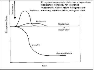 Когда система может реорганизоваться, то есть, перейти из одного стабильного состояния в другое, это более существенная единица измерения динамики экосистемы и есть экологическая упругость.