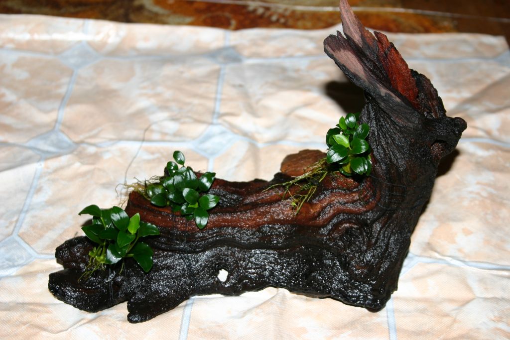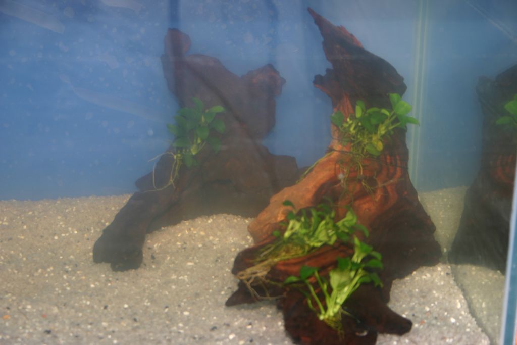 За 11 дней стекло покрылось легким водорослевым налетом, на растениях и корягах его не видно. Свет сильный, брага. Растения тронулись в рост через пару дней. Пузырчатка выросла больше чем в 2 раза. А бликса выпустила цветонос