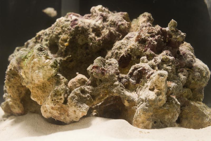 Основной свет ещё в пути (будет через пару дней) в данный момент банка подсвечивается МГ 200 Вт с расстояния см 30 от поверхности 2-3 часа в сутки (первые двое суток камни отходили от стресса и было только естественное освещение)