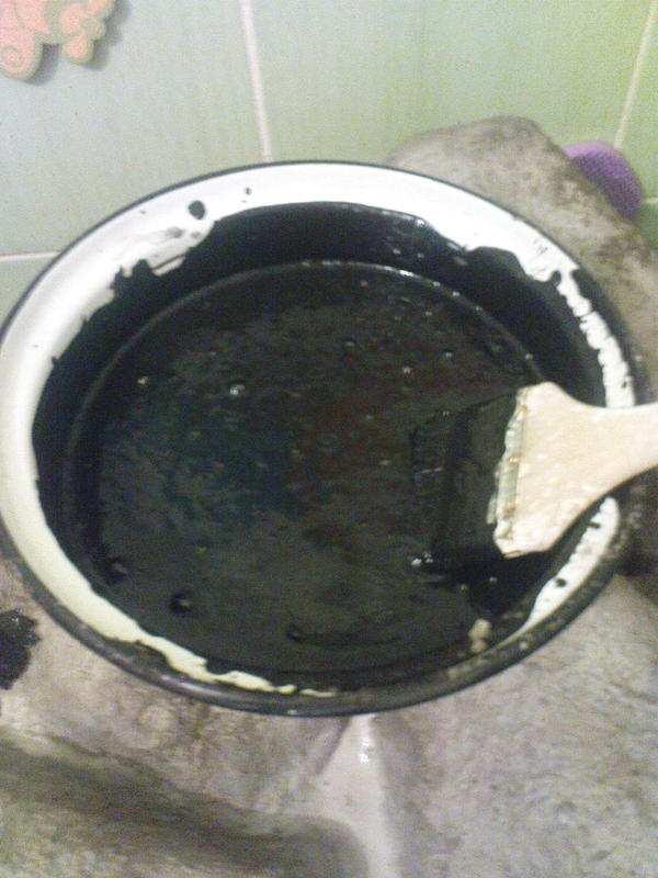 Замешан раствор цемента 1 к 1 с песком и добавлением черного колера. Консистенцией кефира  или чуть гуще