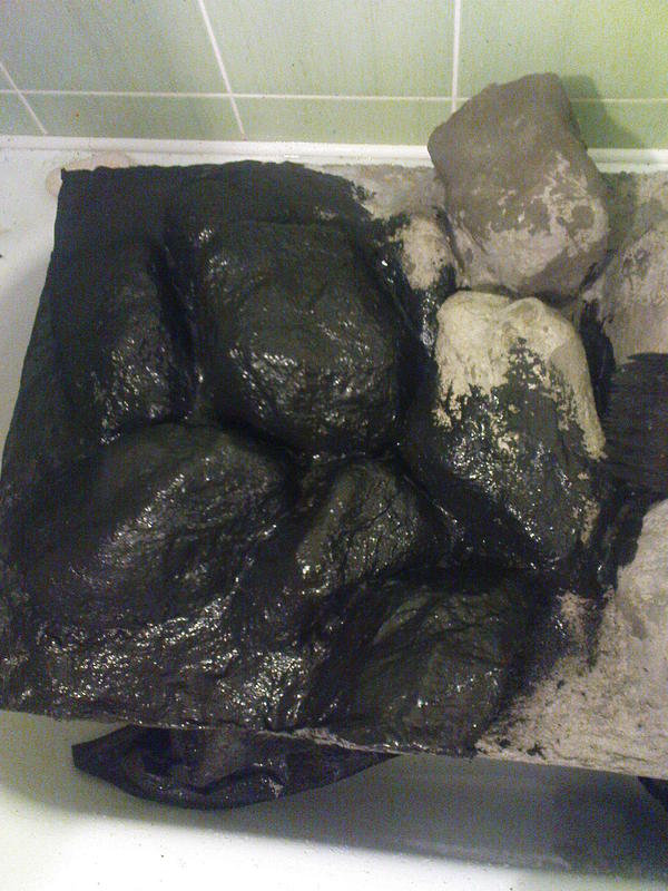 Не использовать пенопласт и мое никудышное художество вообще а выложить фон из натурального камня. Ну а дальше как и раньше, уже камень покрывать субстанцией