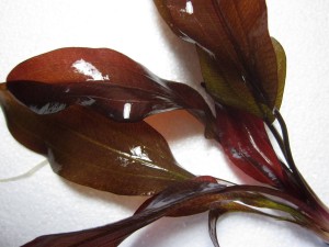 Молодые листья Эхинодоруса ‘Регина Хильдебрандт’, в зависимости от условий содержания имеют окраску от винно-красного до красно-фиолетового цвета. По мере старения листьев их окраска переходит сначала в буро-зеленый и затем в зеленый цвет. Окраска молодых листьев довольно устойчивая и порой на одном растении можно наблюдать более десятка ярко окрашенных листьев. Кроме эффектной окраски листьев, ‘Регина’ привлекает своей небольшой, по эхинодорусным меркам, величиной. Она редко превышает высоту 25 см, и поэтому в больших аквариумах ее лучшее месторасположение на среднем плане, а в маленьких аквариумах ее нужно размещать на задний план, но где бы она не находилась все равно смотрится очень эффектно.