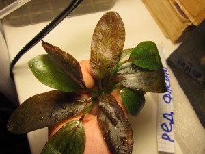 Echinodorus ‘Red Flame’*- очень красивая вариацияEchinodorus ‘Ozelot’. Привлекает внимание сочным темным красновато-коричневым густым крапом на красноватых листьях, образующих плотную розетку. Позже листья зеленеют, самые старые листья постепенно становятся более мшистыми и сочно-зелеными.