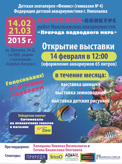 Детская зоогаллерея "Феникс", г. Николаев, с 14 февраля по 21 марта проводит конкурс аквариумного дизайна "Природа подводного мира".