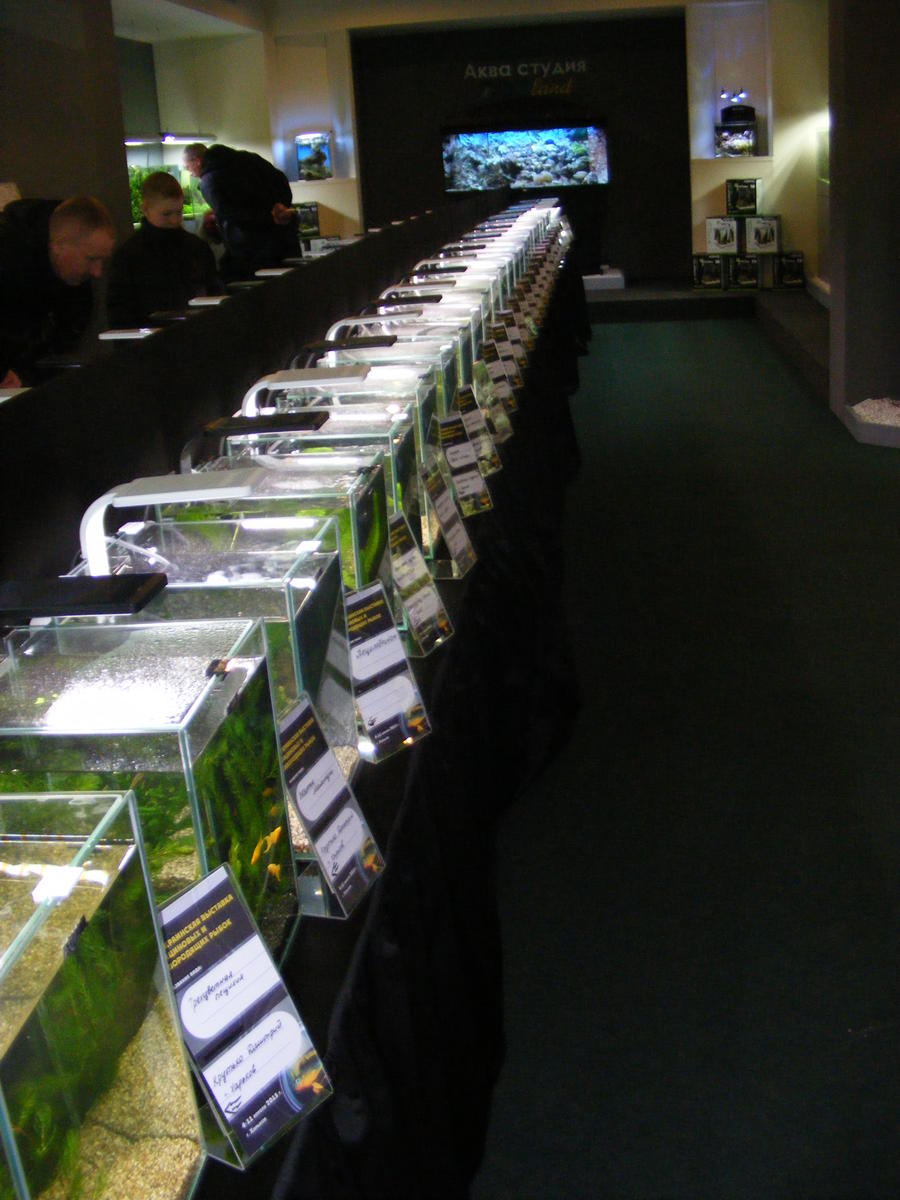 Но вот странно.Почему-то,вы,как и многие другие,привели только 1(одно) фото из 6(шести),относящееся к выставке.Остальные 5 композиций из постоянно имеющихся и обновляющихся.Не могли бы вы прояснить,в чем дело?Почему крайне мало фото именно выставочных акваримов?