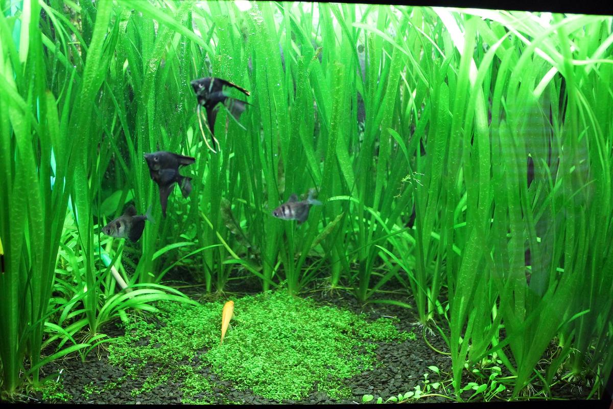 З рибок лише тенреції, пецилія, скалярії, гарінохейлус та сіамський. Валіснерія росте швидко, за тиждень настригаю літру. Куба росте важко, напевно тому що валіснерія її затіняє після стрижки одразу на другий день.