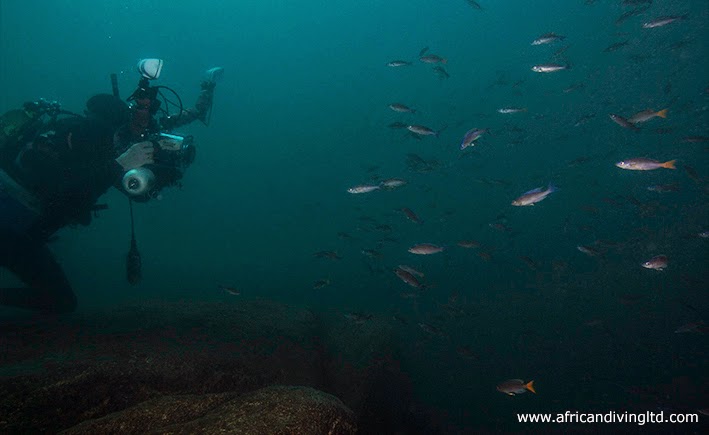 Рис. 8.Один из авторов, фотографирует Cyprichromis leptosoma в Silaf Rocks, Cape Mpimbwe. Снимая в в природе, от фотографа часто требуется большое терпение и иногда часы неутомимого ожидания, что бы подойти на близкое расстояние к цихлидам.