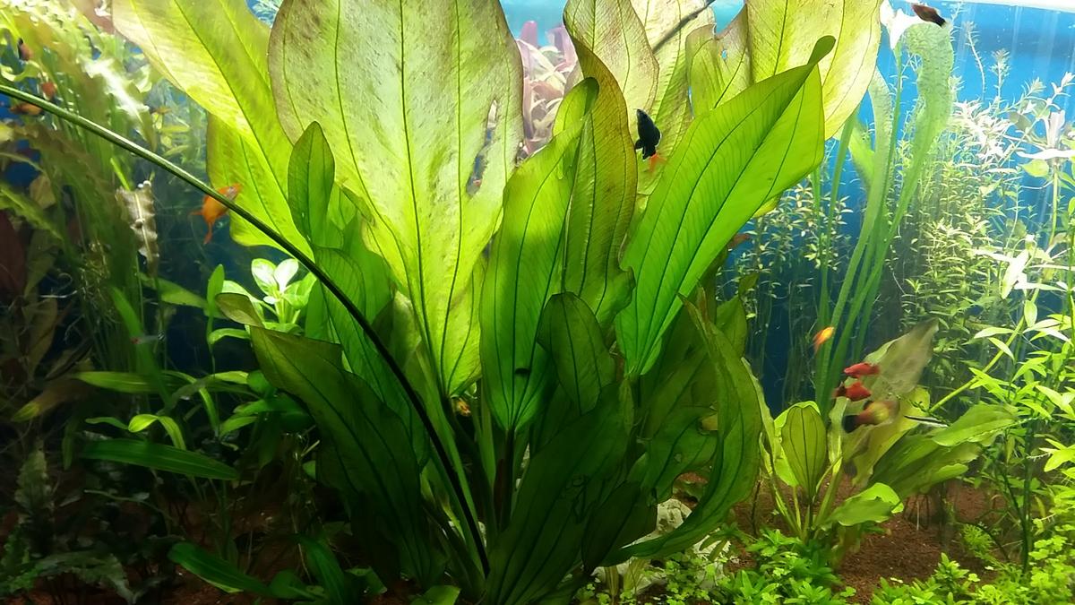 Здравствуйте, помогите установить вид даного великана. В кусте где-то 20-25 листов, высотой уже больше 60 см, начинает вылазить с аквариума. Может кто подскажет что за разновидность, и сколько он будет еще расти 6