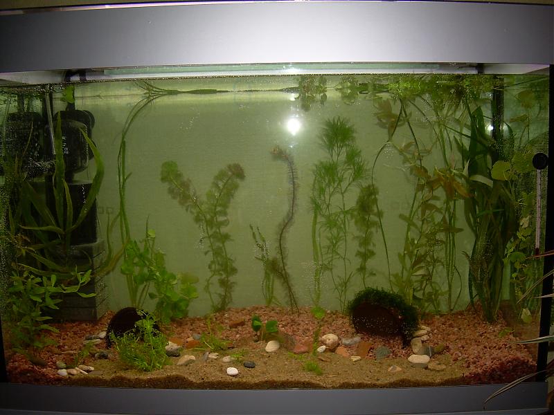Мрачновато вышло.0_0 Лично я бы не покупал по одному кустику растений и вот так вот высаживал... Но собственном опыте убедился что большинство из этих кустиков могут и не выжить в одиночку.)) Рыбки ведь разные бывают.