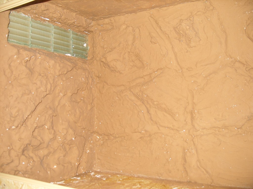 А вот террариум, где я использовал в качестве фона - пенопласт, потом покрывал алебастром и акриловая краска. Еще нужно 1 раз прокрасить.