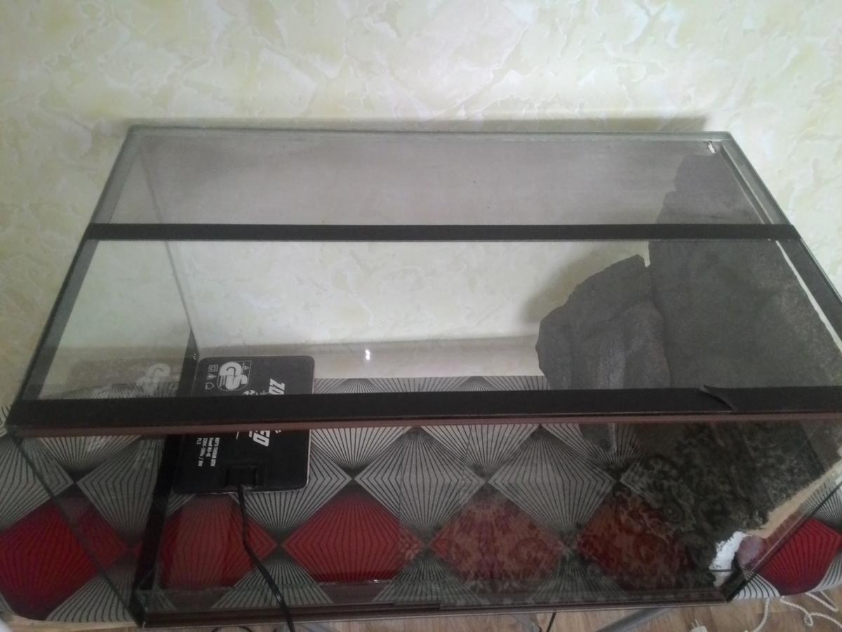 Продам хороший террариум размером 60х35х35 с термоковриком. Раздвижные дверцы и сетка для вентиляции. Состояние отличное. Термоковрик - Zoo-Med, полностью рабочий. Бонусом отдам объемный фон, декорирован под камень (немного погрызан). Террариум вымыт и готов к переезду))). Самовывоз с ул. Драгоманова.