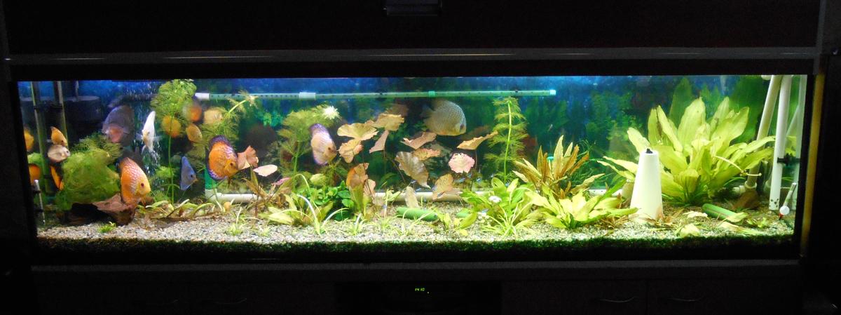 Прошу помощи специалиста по свету.Аквариум 2.000х500х450. Немогу подобрать освещение.В данный момент стоят 4 шт Osram 30W/865 ,2 шт Osram Fluora 30W/77 , 2 шт ЛБ 30. Роста растений нет. Температура 27 *. Ph колеблится 6.5-7.До этого переменял кучу ламп.Фото аквы прилагаю.Большое спасибо кто откликнется.Николай.