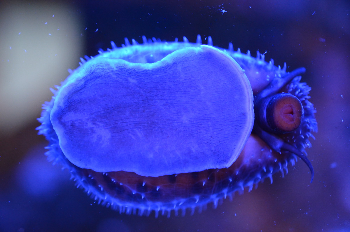 Как полезла в зонты, думал всё... Ан-нет, что-то ищет между поллипами, но мягкоту не трогает. Вторую ночь в них гуляет, но зонты на месте. Вылизала половину задней стенки, короче похоже скоро подкармливать придётся... Серит ещё как конь, такими гавэлдыками, это вообще, у неё сзади в ракушке даже проём есть что всё пролезало