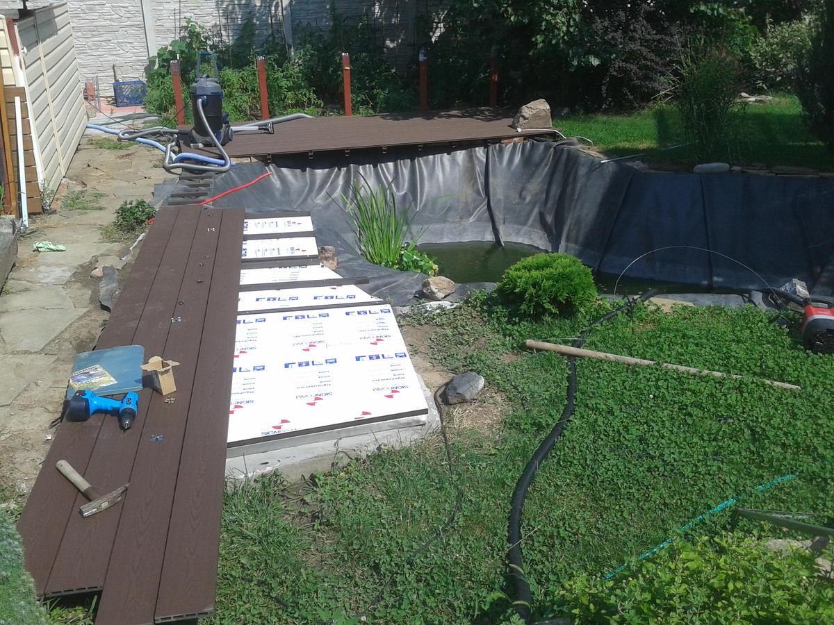 После того, как был подключен фильтр, уже продолжал доделывать укладку декинга.