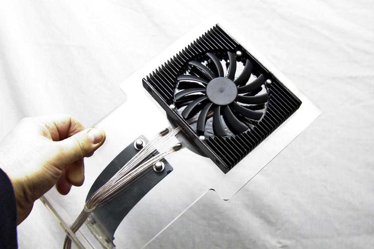 Всё это "хозяйство"посажено ещё и на алюминиевую пластину,толщиной 4 мм.по размеру радиатора с кулером (а шо б не мало было  )
