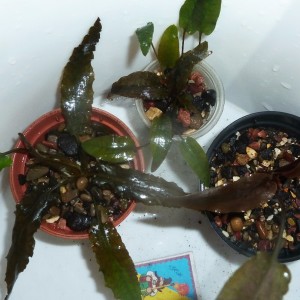 Лотом являються три прекрасні рослинки,які прекрасять любий акваріум.Найвища Валкера(20см),інші -близько 15см.Були придбані в палюдаріумі і переведені моїми дбайливими руками у водну форму.Умови росту-звичайна водопровідна вода без СО2.УДО-при підмінах.Рослинки знаходяться в горшечках і чекають на переможця аукціону.Бонуси,як завжди,будуть щедрими.Посилочка буде надійно утеплена.Удачі.
