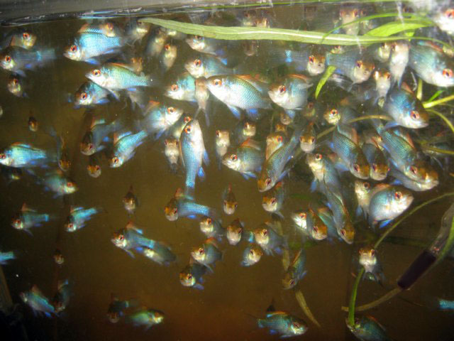 например, неоны, кардиналы, пылающие тетры; мелкие данио, барбусы, представители рода