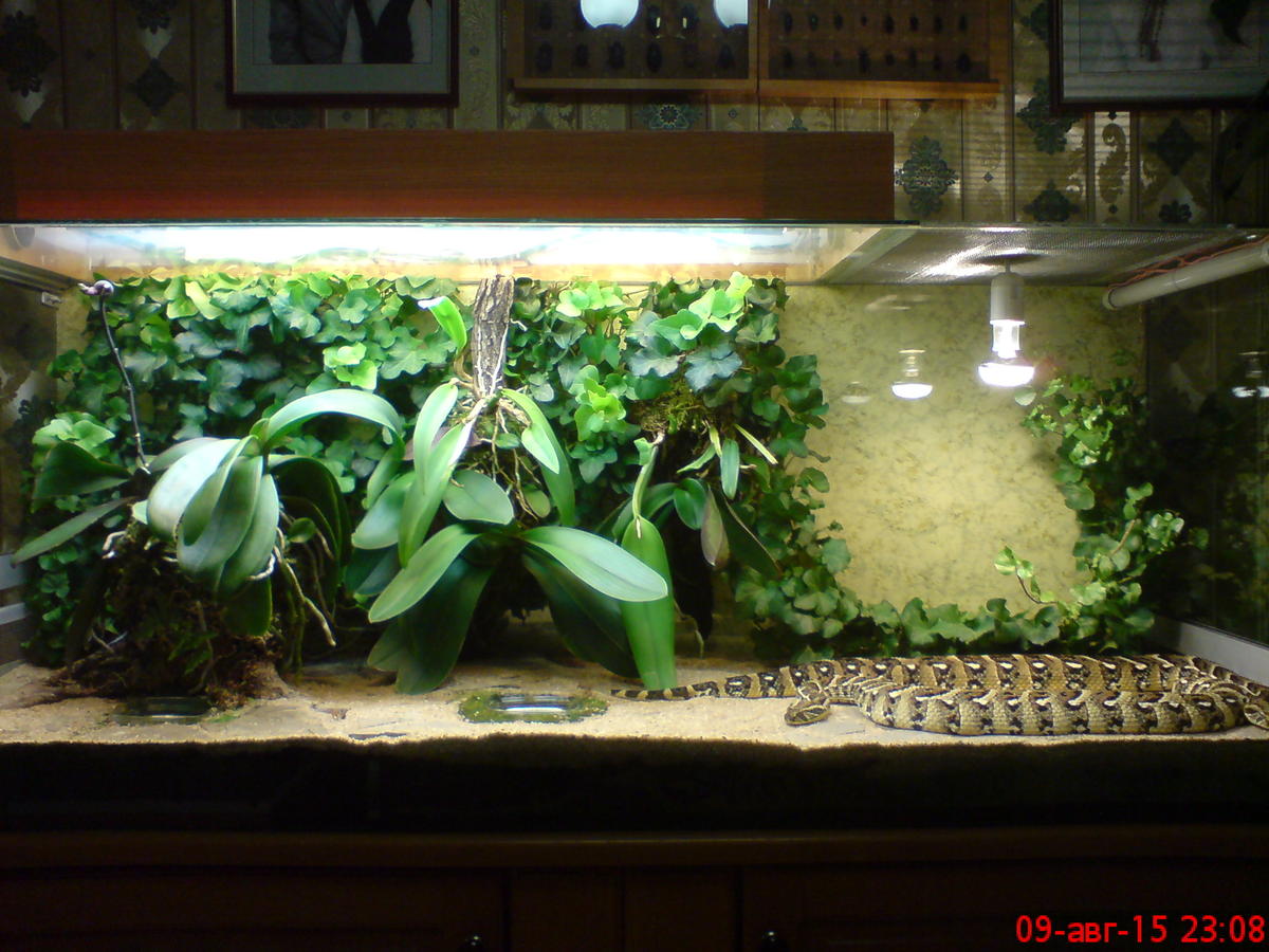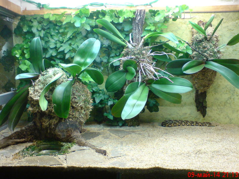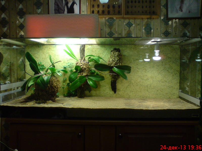 вот такой я сделал светильник для орхидей и плюща в террариум для шумящих гадюк и вот так все сейчас выглядит