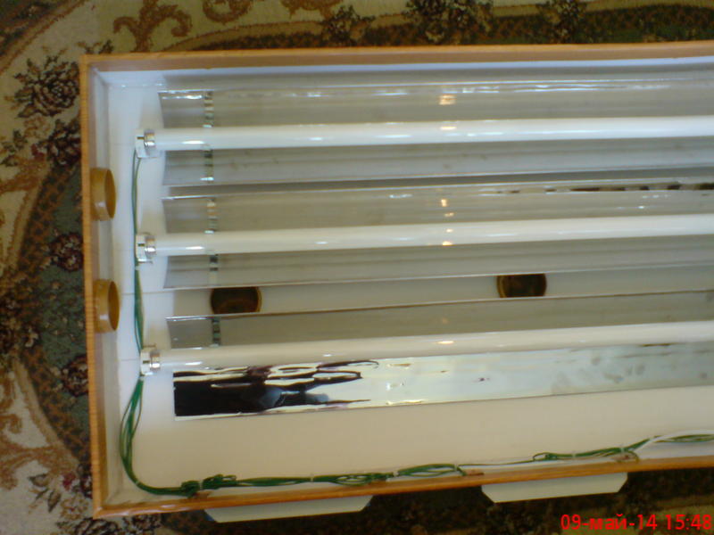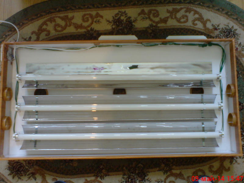 как устроена вентиляция видно по фото. еще установлена еритемная лампа Т8 15Вт для УФ облучения будет включаться таймером на 15 минут 2 раза в сутки.