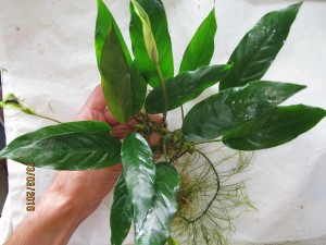 Анубиас вырос в тепличке. При необходимости, легко приживается в подводном виде. Жить может в воде круглогодично.
