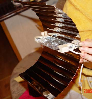 Акуратний світильник. Правда я не розумію, навіщо робити параболічний рефлектор, якщо не ставити у фокусі параболи лампи. Було б добре, щоб Ви додали описання технології виготовлення світильника і список використаних матеріалів.