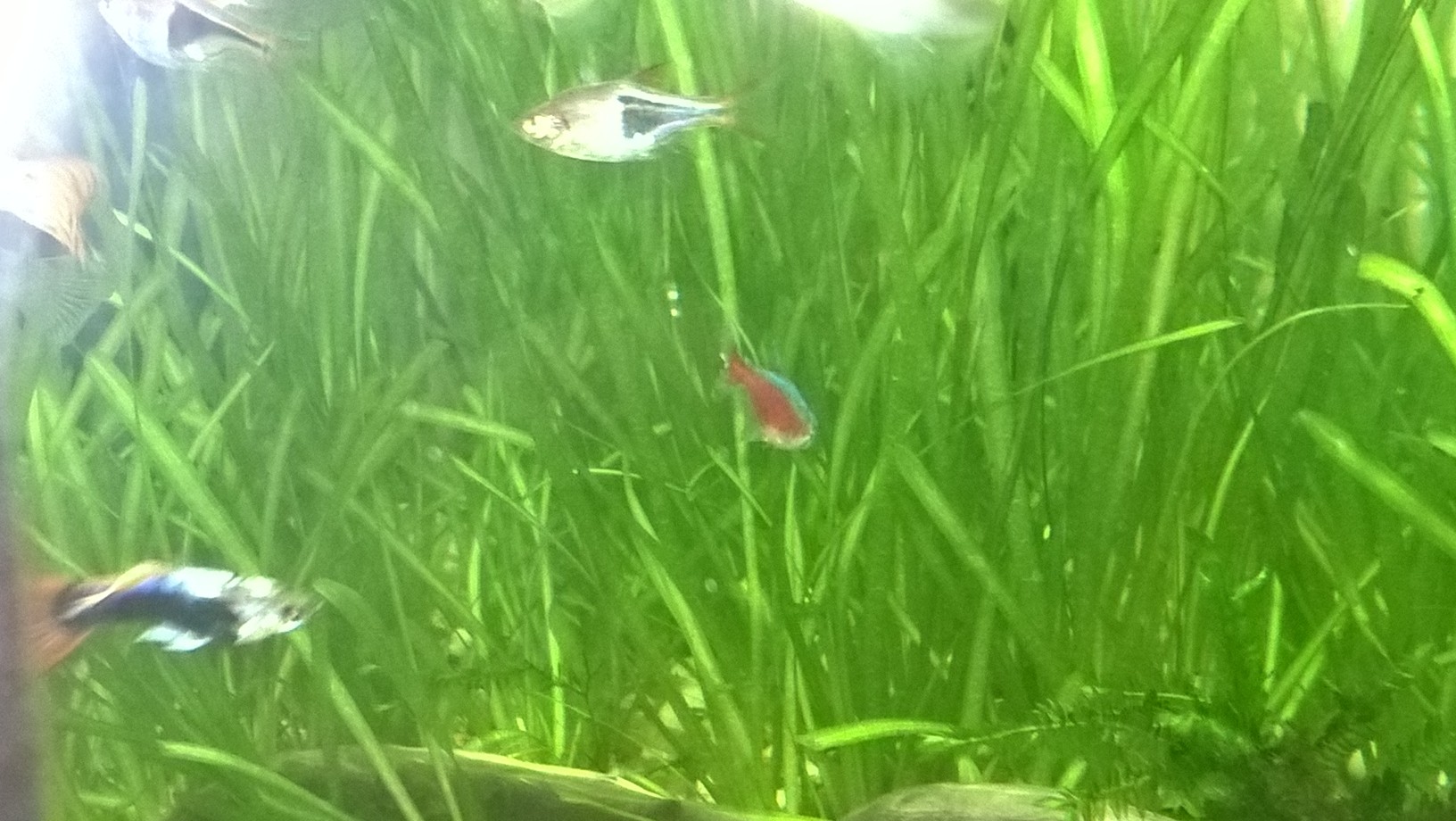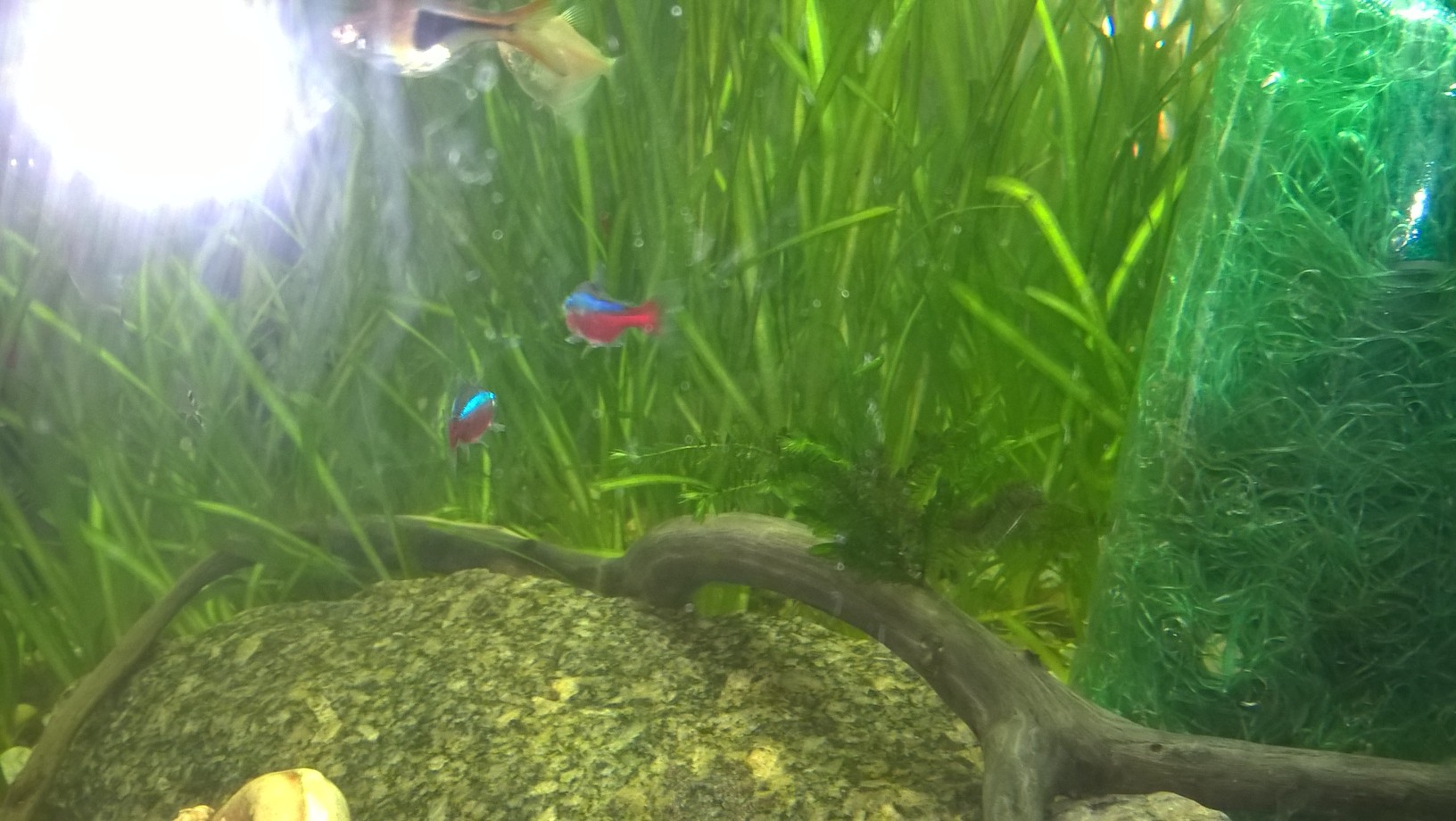 Население:2 тернеции, 2 радостомуса, 2 неона, 1 взрослый самец анцитрус, штук 10 гуппи, 3 расборы, штук 15-20 хелен.