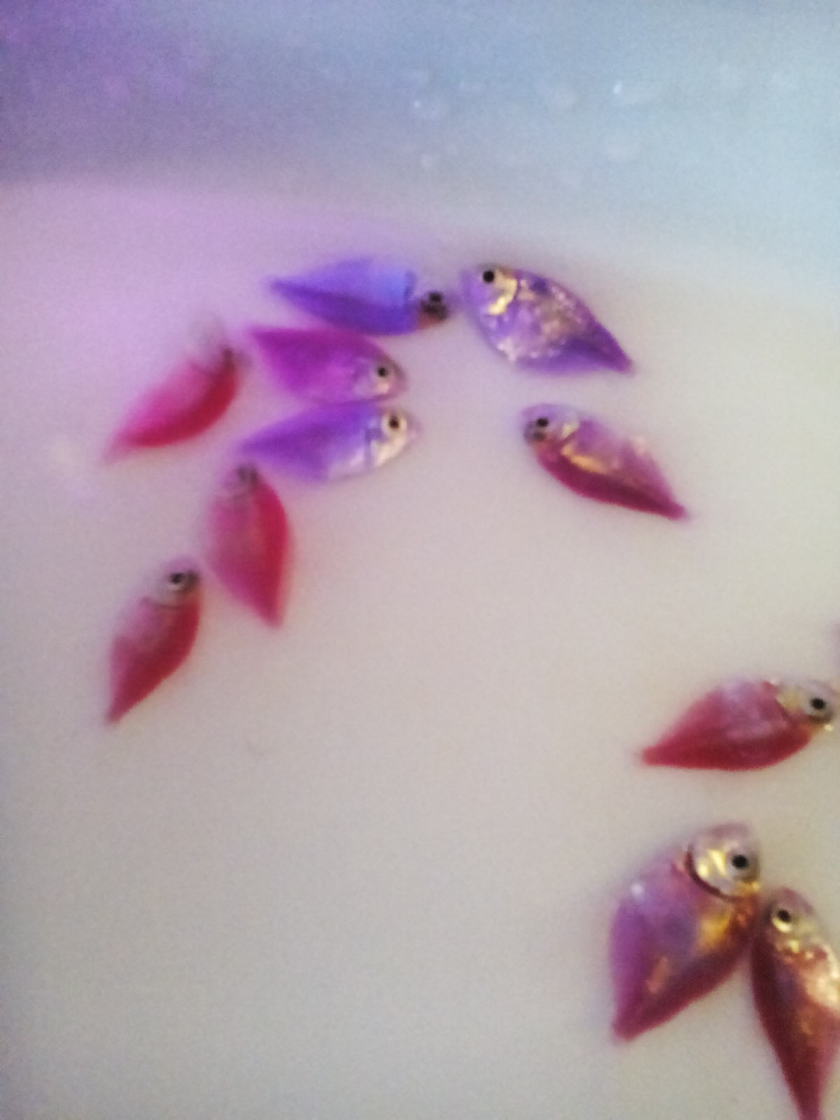 В добавок салатовым и красным данио вывели оранжевых, синих и фиолетовых. Все они были получены искусственным путем