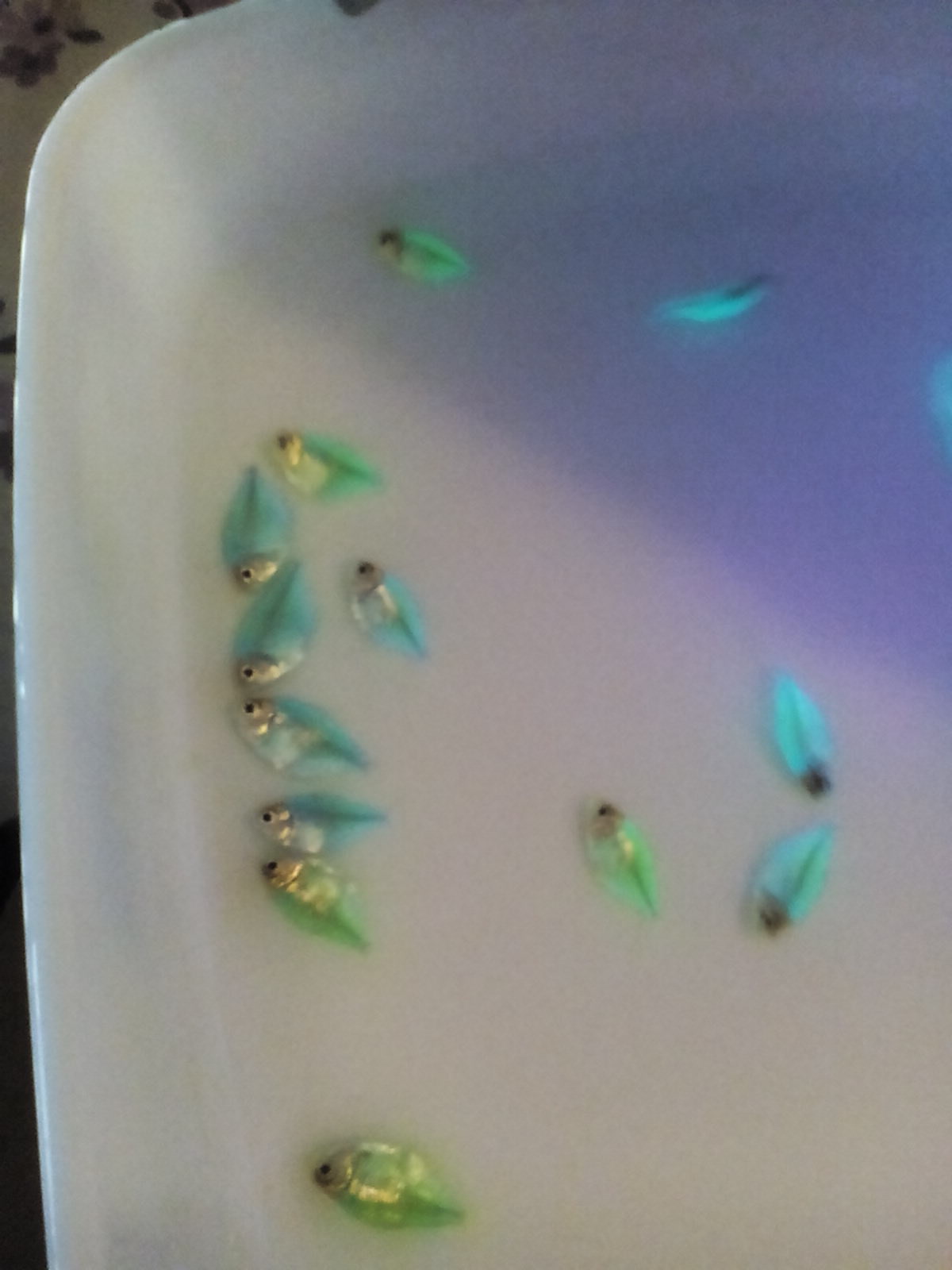 Чуть позже появились еще одни трансгенные рыбки, только в этот раз это уже были тернеции, а в 2015 году под ультрафиолетом засветились суматранские барбусы и скалярии.