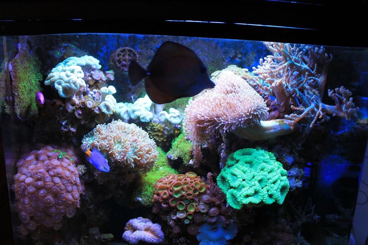 Аквариуму почти 3 года.Много чего поменялось,продалось,добавилось. Оборудование все топовое для такого обьема. Ни одна деталь из строя не вышла.