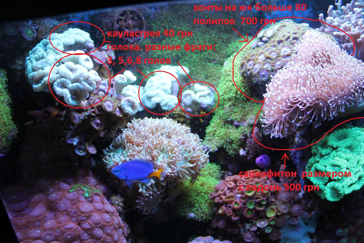 -Коралы (кауластрея салатовая\зеленая,мозговик,бластомуса,дункан,синул ярия,саркофитон,политои 3 вида,зоантусы,бриарреум,парозоантусы и всякое разное чего не вспомню.