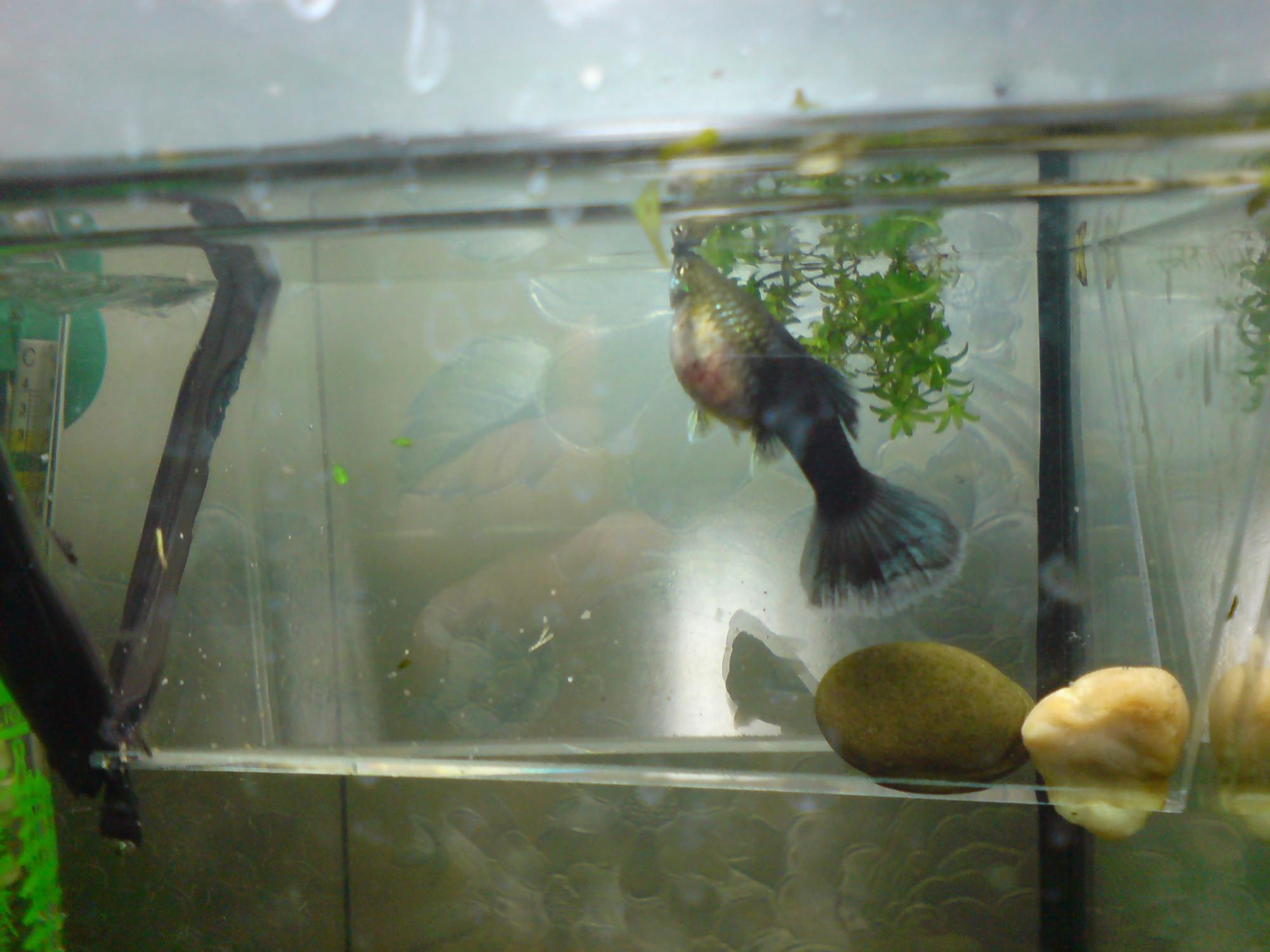 гуппи не может разродиться, по ходу первый нерест, бока уже начали наливаться кровью, буквально за 1,5-2 часа, плавает почти вертикально, с последних сил заглатывая воздух.