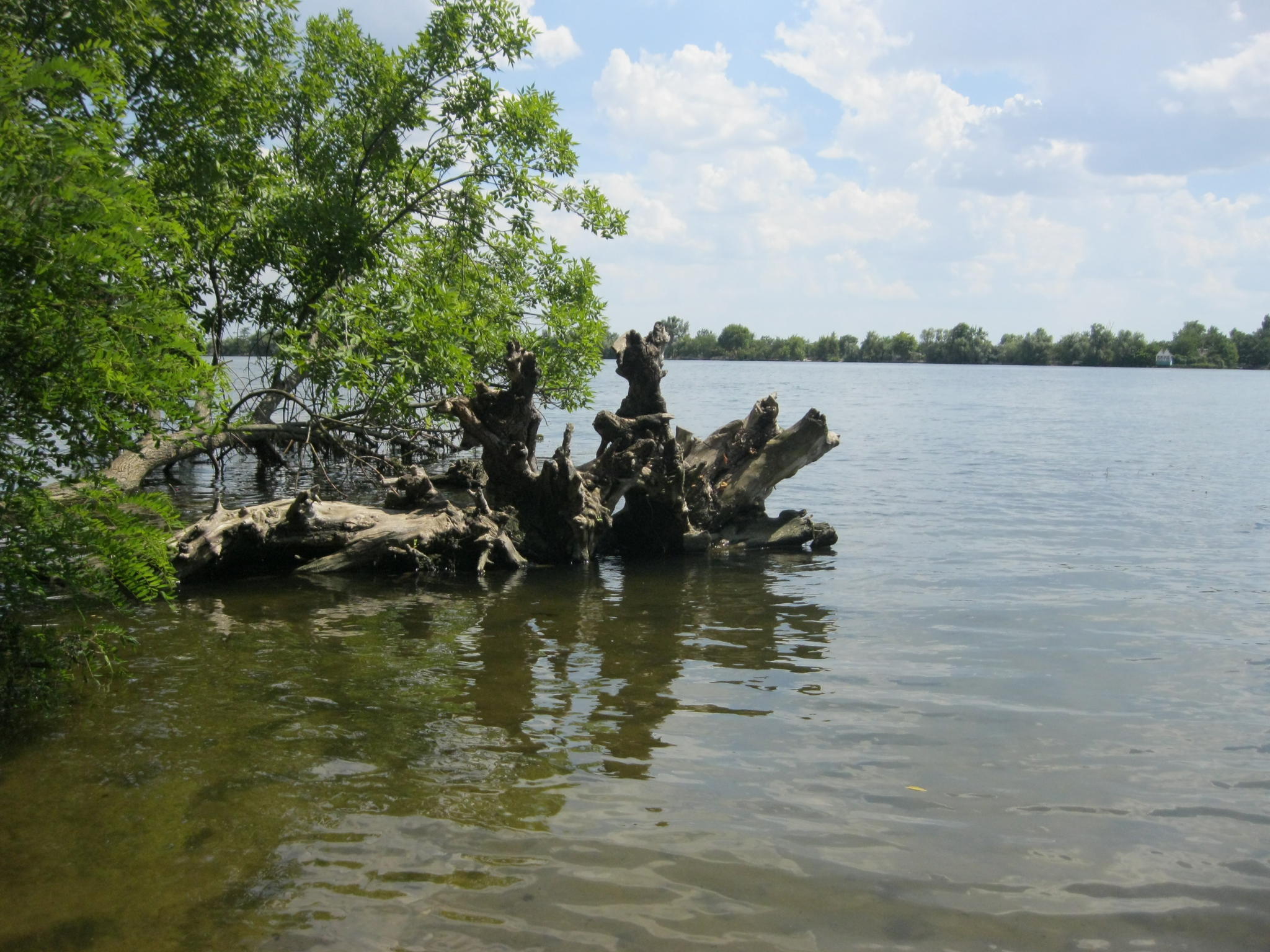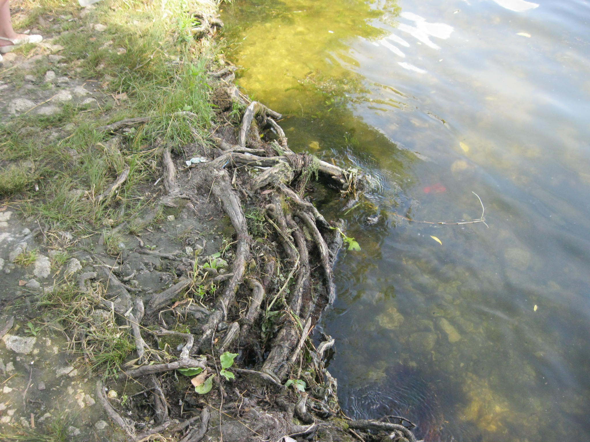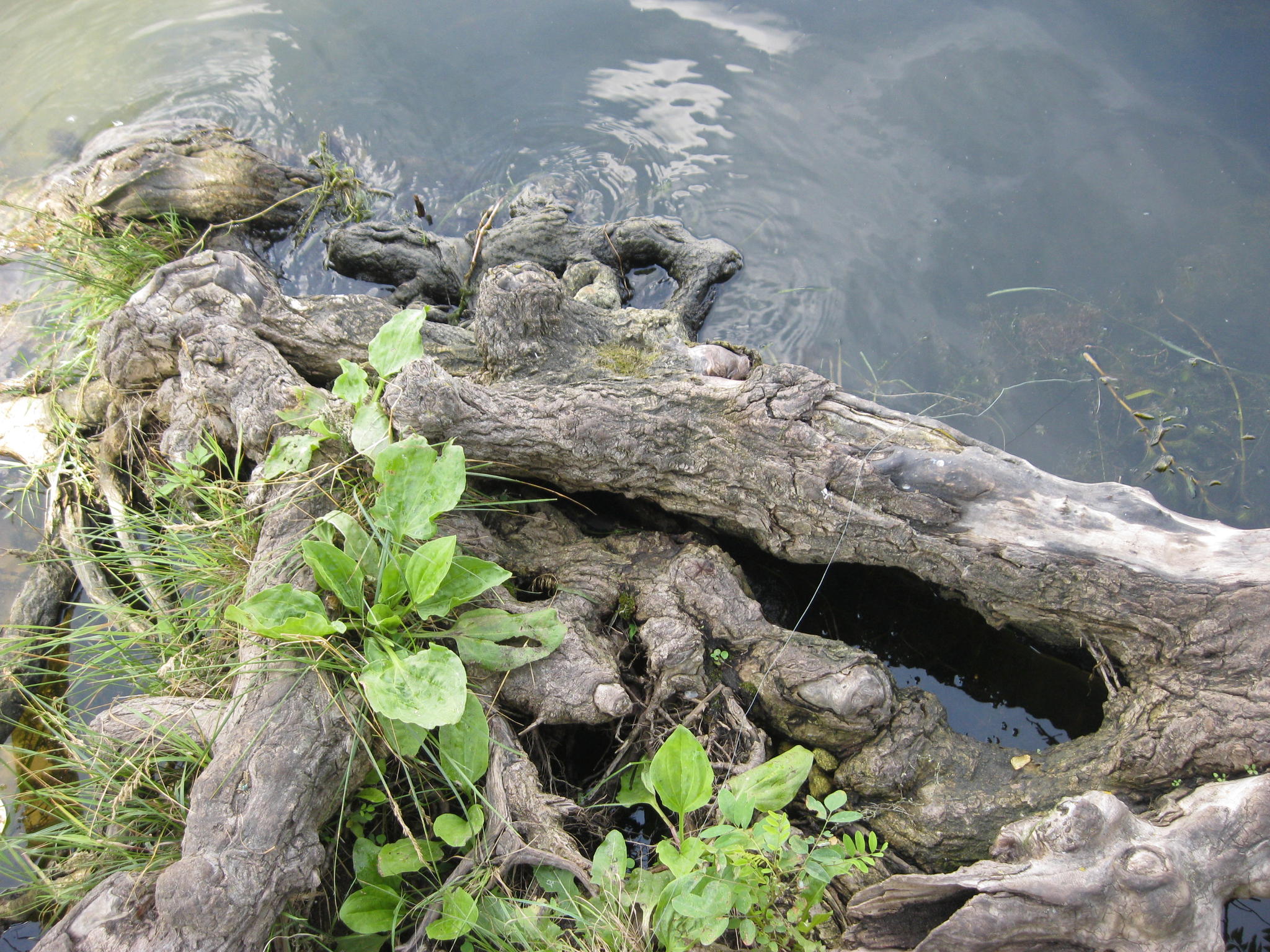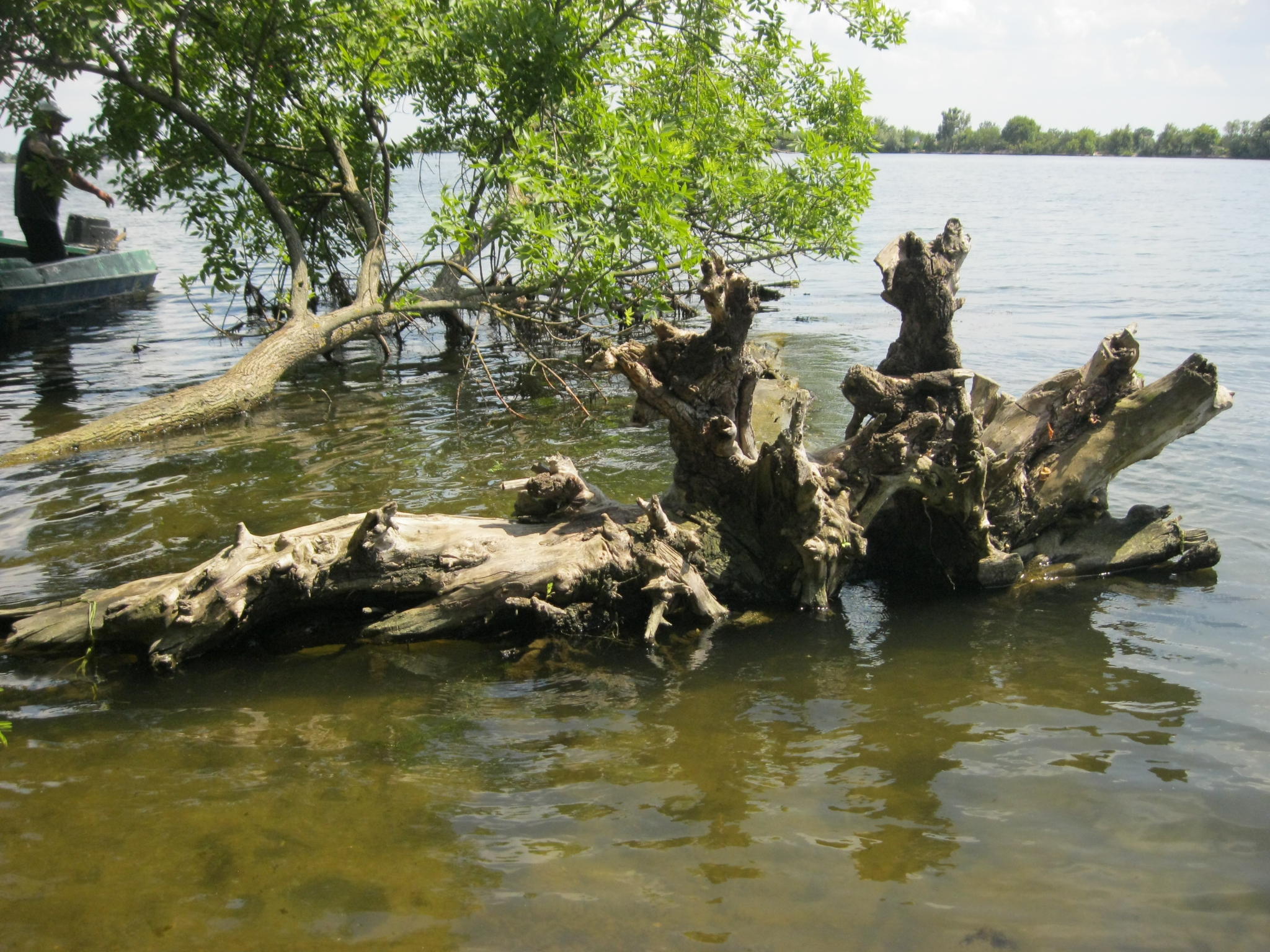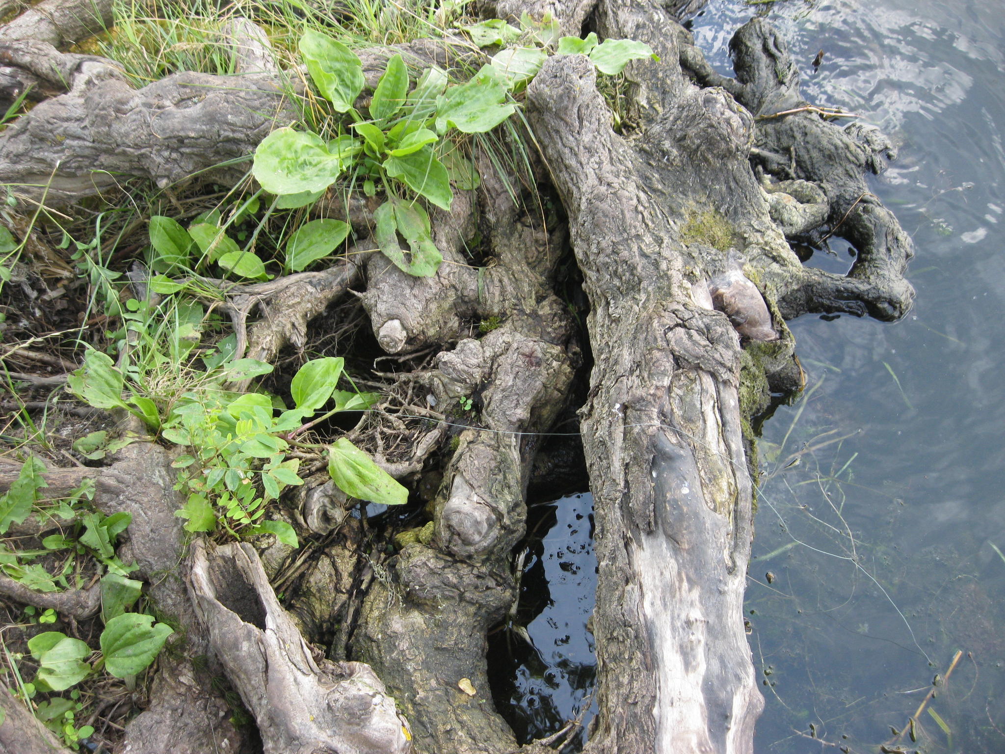 В цьому поваленому, але живому якимось чином дереві, серед коріння гніздяться безліч птахів. Що то за пташки не роздивився...