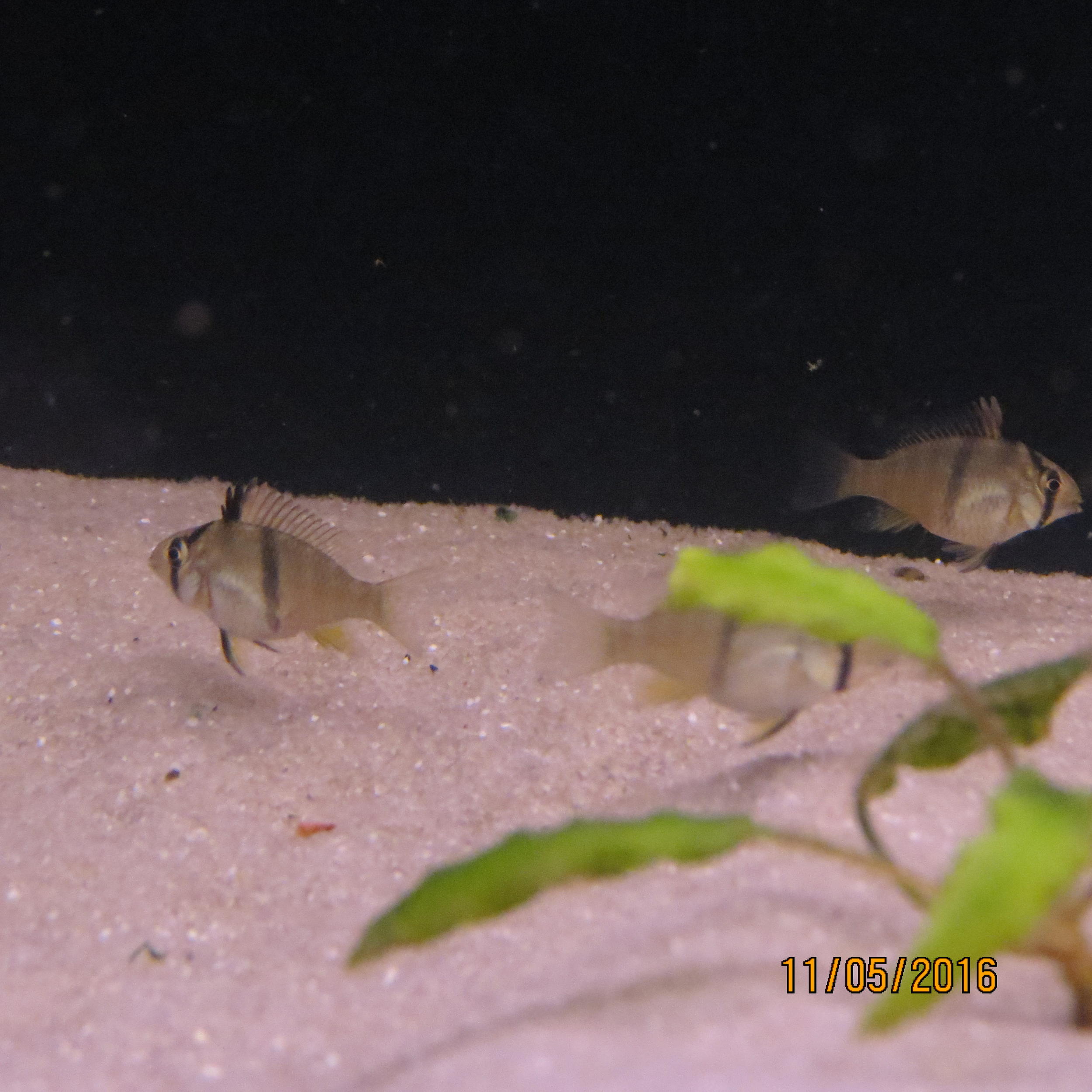 Собственного разведения, выращены на Киевской воде.Размеры 3+см. ЭКЗОТИКА и редкость в Украине. .Одна из самых эффектных и интересных цихлид.Губы как накрашенные чёрной помадой.Это относительно не большие (максимальный размер 11см.,самки меньше) , неприхотливые в содержании рыбы, обладающие красивым, утонченным окрасом тела,что немаловажно, в отличии от многих цихлид...Рыба стайная, лучше держать от 5 -6 штук, во время нереста делится на пары.Агрессия внутривидовая, еле выраженная, у меня живут с неонами и родостомусами.