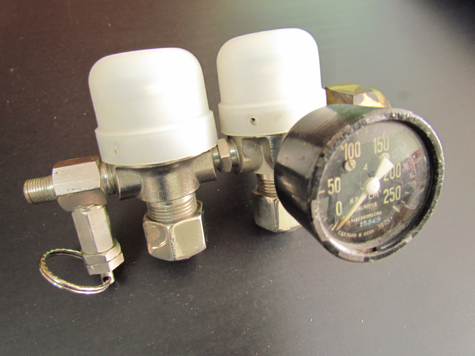 5. Редуктор медицинский двухступенчатый с плавной регулировкой (б/у, рабочий, раритет не иначе, на манометре написано 1975г. По весу тяжелее обычного редуктора, вещь зачётная однозначно) Не помню откуда он у меня появился - 250грн. Скрытый текст