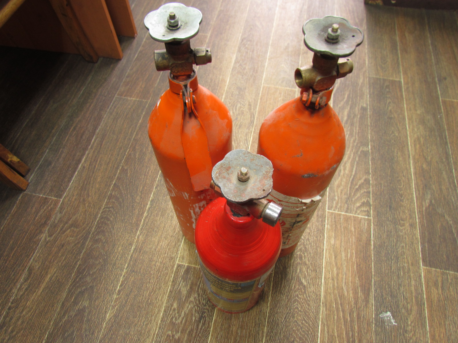 8. Баллоны СО2 (огнетушители старого образца с вентилями) (б/у в своё время были все в работе под 200, 250 и 500 литровым аквариумами, могу покрасить если нужно) 2шт.-3л., 1шт.-2л, по 100грн.