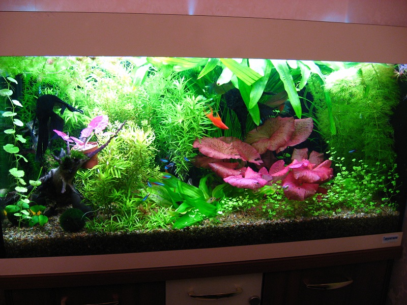 Отличный аквариум, аж жаба давит). У меня эхинодорус уругвайский загнулся, нимфея тоже. Зато криптокорина устериана и валиснерия прет как на дрожжах. Первая уже подзаколебала, раздаю ведрами.