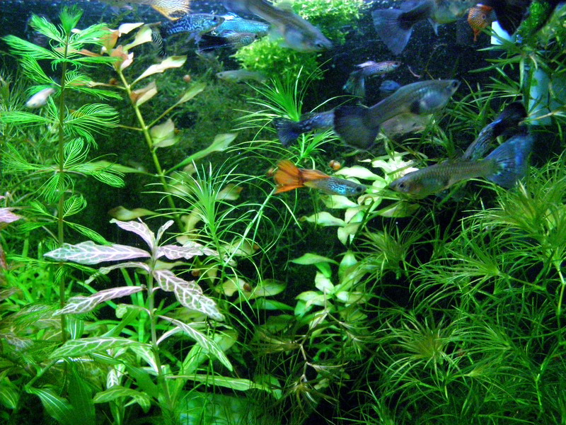 Перенаселение как по мне... уже виден малек гуппи... густая трава, их не поедят..