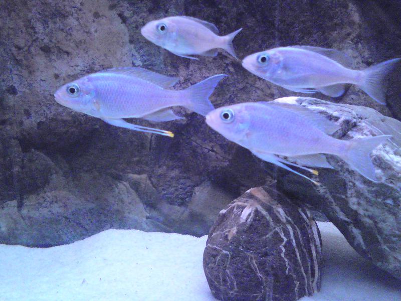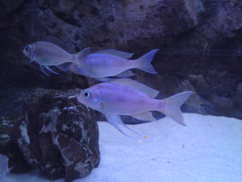 У меня на данный момент живет взрослая пара Ophthalmotilapia ventralis Kapere, фото к сожалению пока нет. У предыдущего хозяина нересты были, в моих аквариумах пока не нерестились. Самец и самка практически стального цвета.