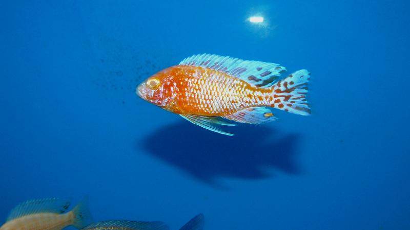 Aulonocara red dragon albino подросток 6-7см, самцы начинают окрашиваться с 4-5см
