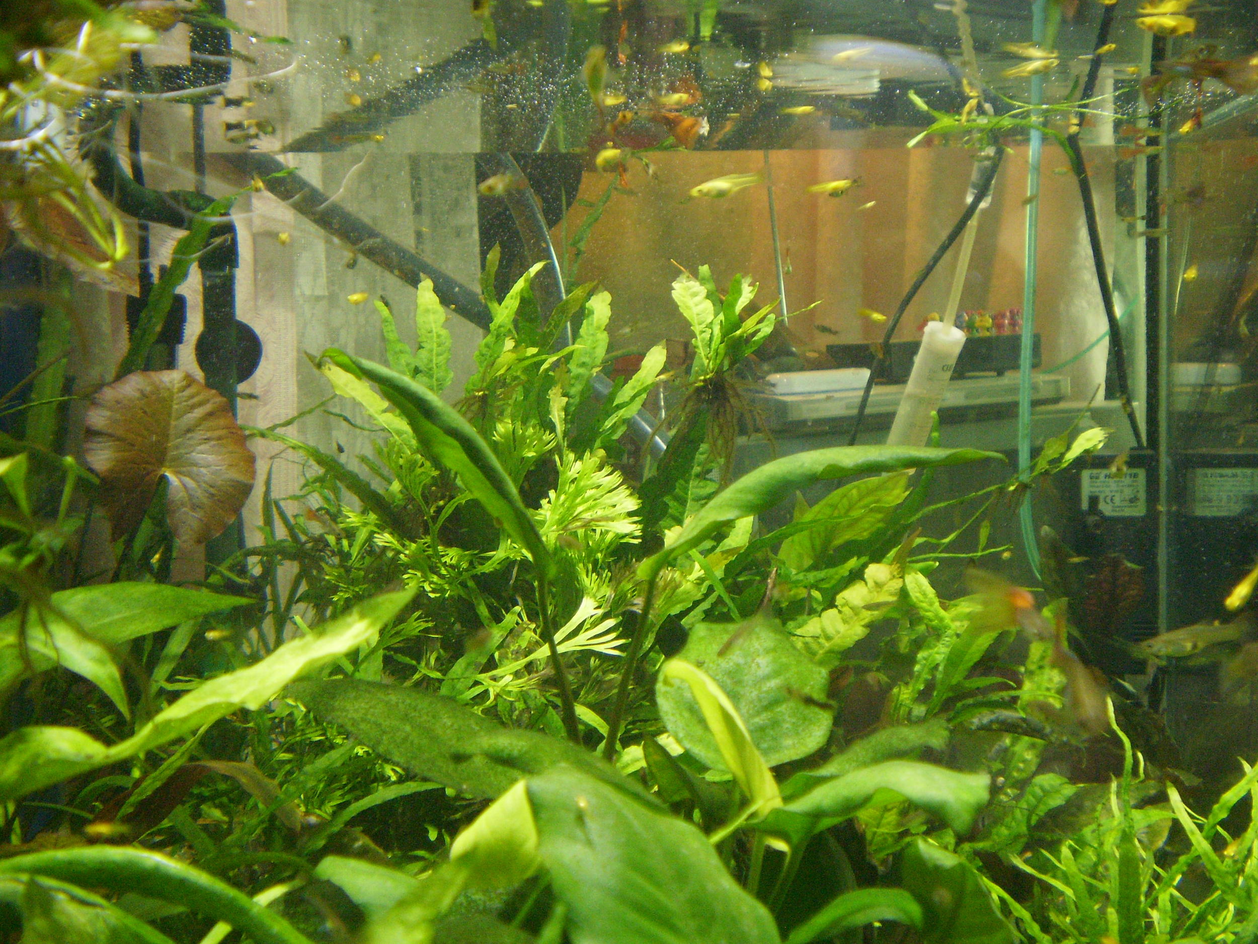 .Потом начал замечать зелёненькую пыль на стёклах,плавно переходящую в яркий ксенококус на анубиасах,криптокоринах,на папоротниках не заметил,вот они практически не реагировали на различные факторы,росли медленно,но уверенно.Подачу СО2 настроил на круглосуточное функционирование,рыбы никак не выказали признаки гипоксии-значит порядок.