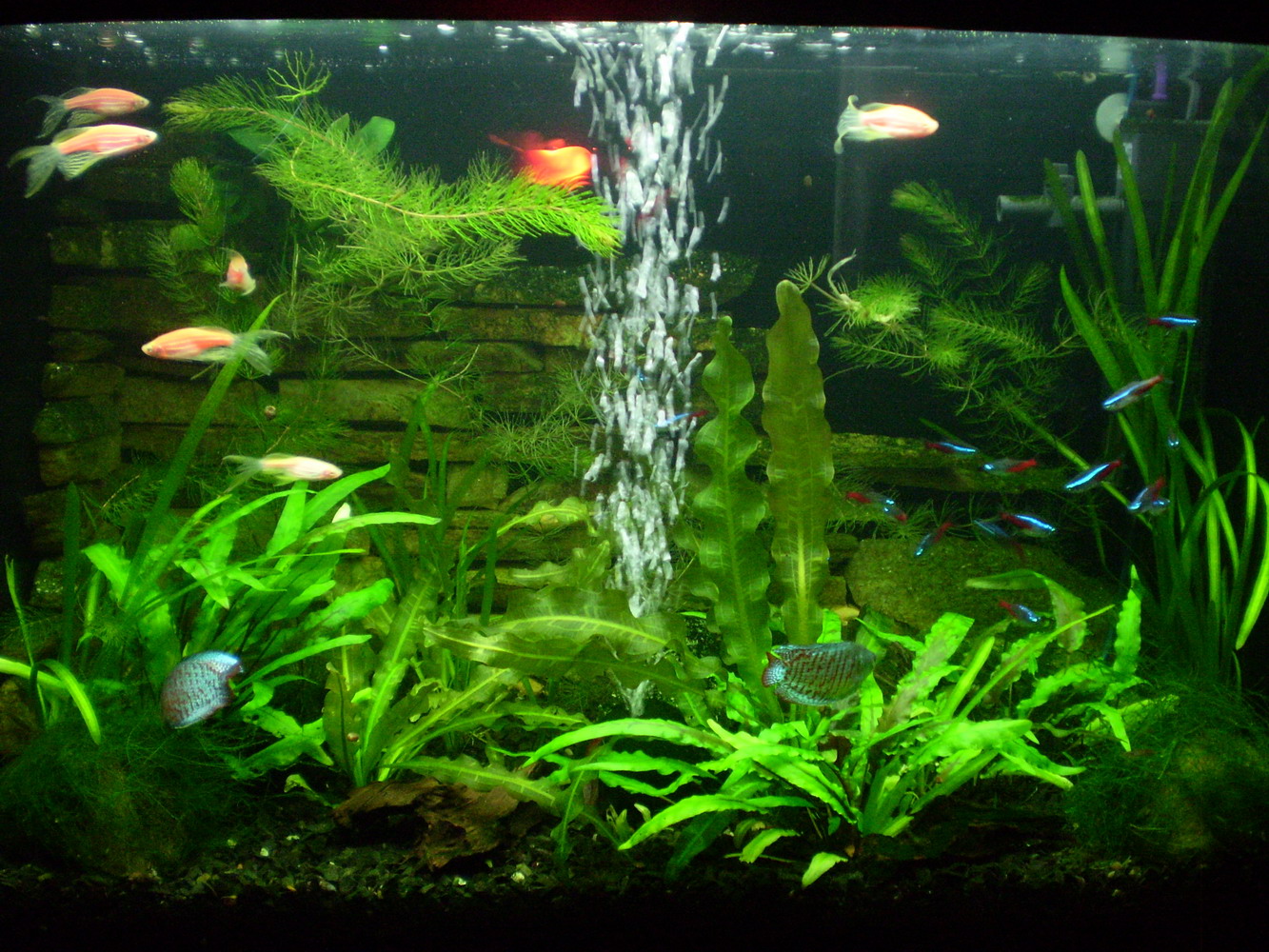 Животина: данио трансгенные (были первопроходимцами), неон голубой и алмазный, анцыструсы, коридорасы, лялиусы, ну и неокаредина..