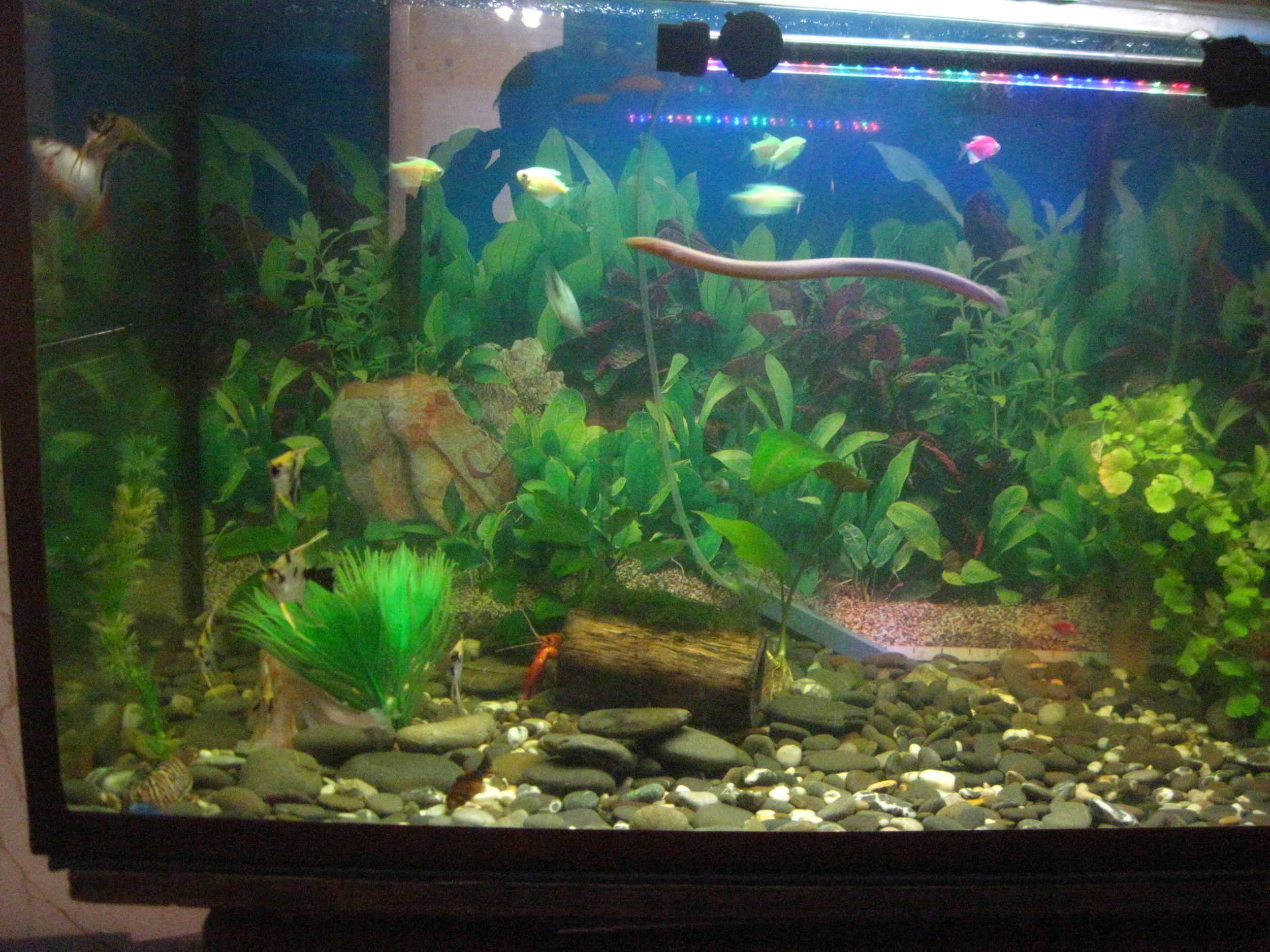 PS Самые маленькие рыбки данного аквариума - петушки. На рынке сказали, что они не уживутся с данными рыбками, их сожрут. Но они все равно оказались в данной кампании. Ни один петушок до сих пор не пропал.