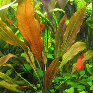 Echinodorus St. Elmo’s Fire *— растение не капризное, хорошо растет как в свежем, так и заиленном грунте. На ярком месте покажет красный окрас молодых листьев. При достаточном освещении может держать листья красными всем кустом.