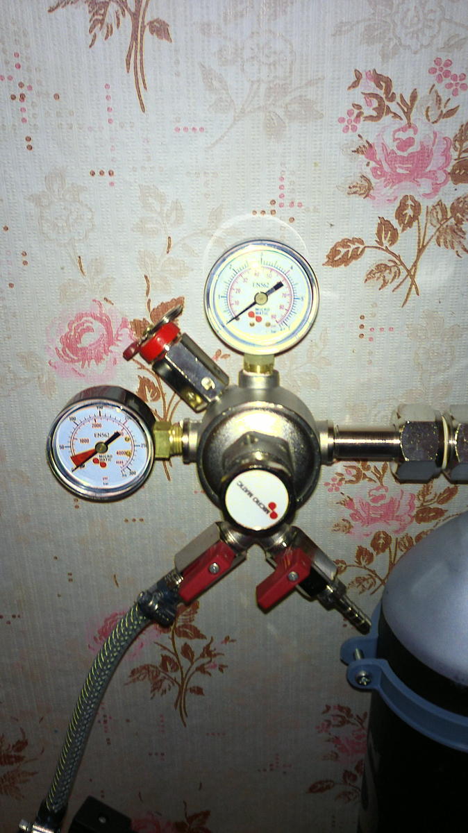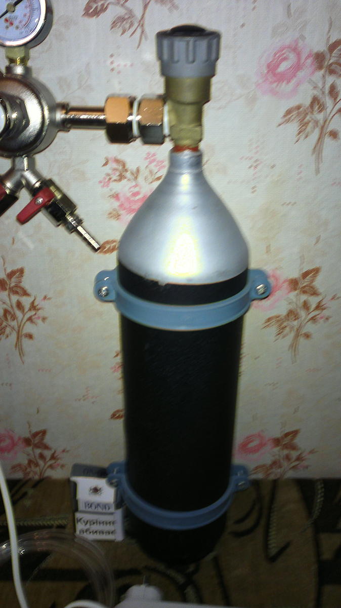 Переход с редуктора на электроклапан реализован специальным армированным углекислотным шлангом высокого давления на хомутах.