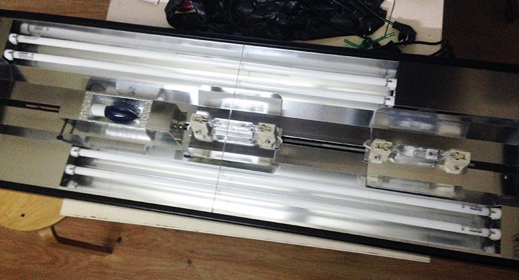Переделал. Поставил 4 Т5, обесточил одну лампу МГ (теперь она запасная), вторую установил в центр, а лунный свет сдвинул в сторону. Только одно упущение - нужно было приобрести ЭПРА для Т5 с возможностью диммирования, оказывается уже есть и такие, что бы подключить к системе восход-закат к примеру Juwel